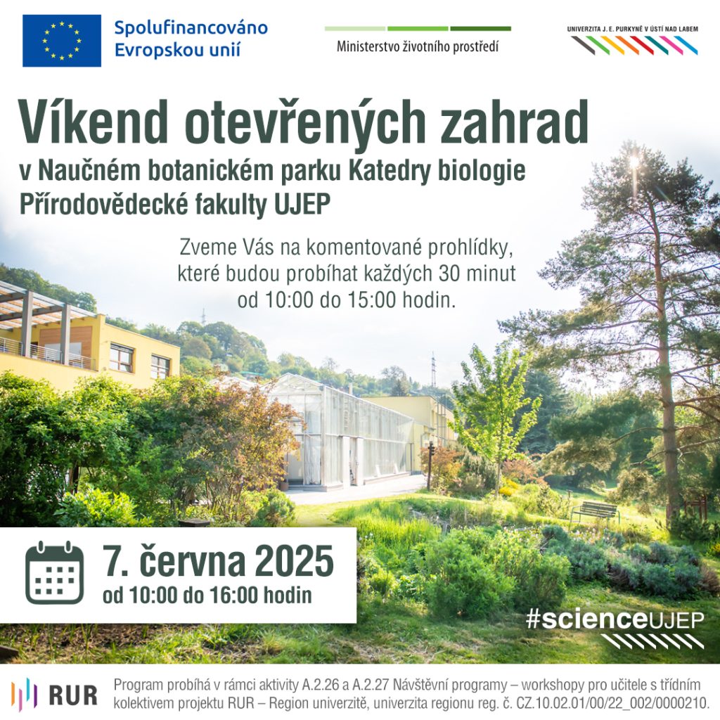 V rámci celorepublikové akce Víkend otevřených zahrad vás srdečně zveme do Naučného botanického parku Katedry biologie Přírodovědecké fakulty UJEP, který je držitelem certifikace Přírodní ukázkové zahrady.